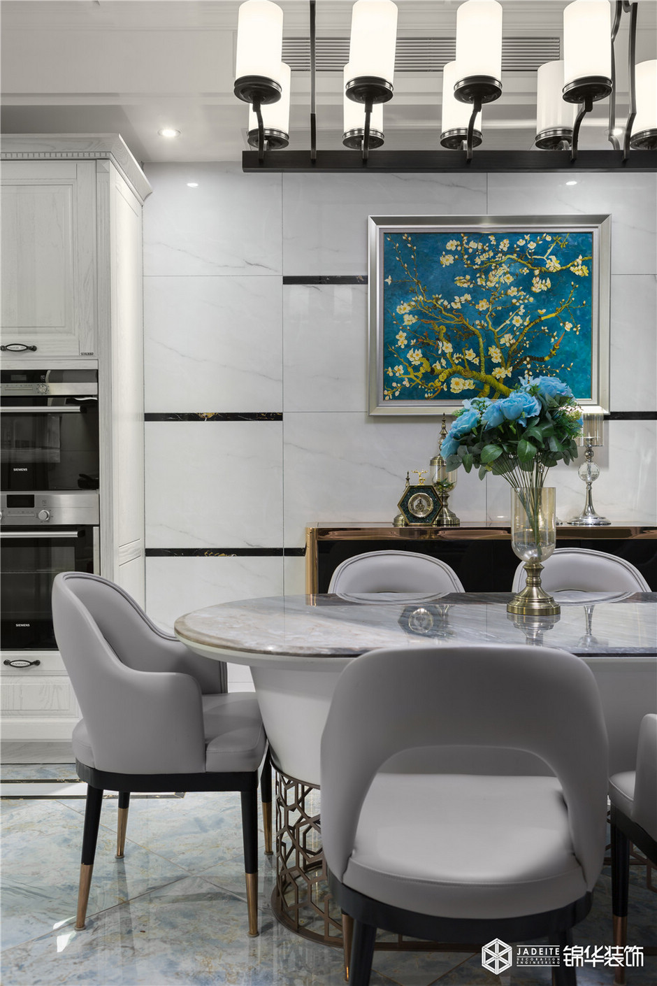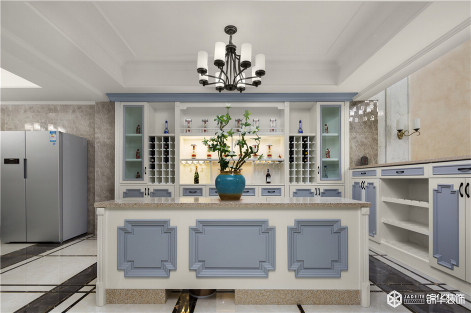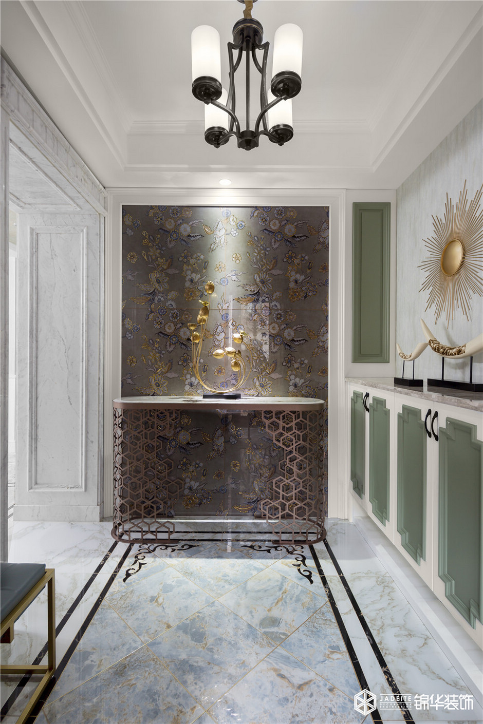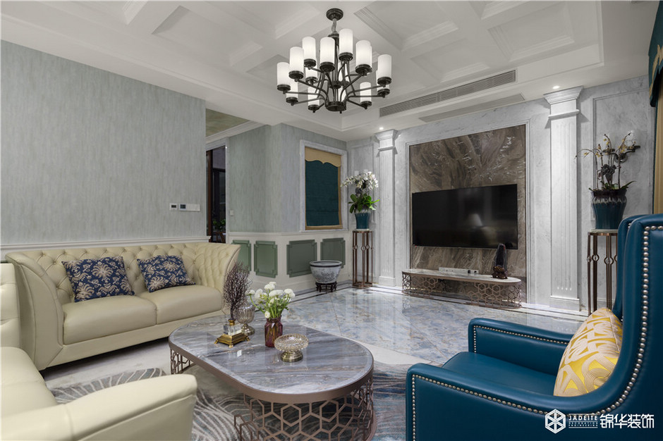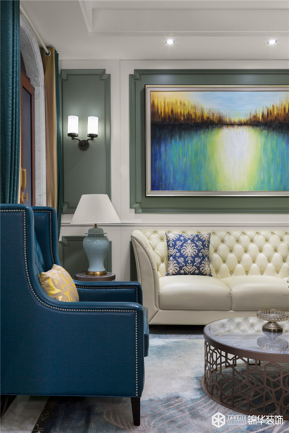 设计师:是的,业主那会看了挺多的效果图以及实景照片,但没有一个清晰的概念,说特别喜欢哪一个。巧的是,那会广州正好有一个设计展和家具展,我们就去了。展会上,客户特别喜欢一款沙发的样式,所以我们就根据这个思路,找到了本案的设计风格——美式乡村。