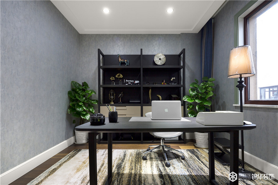 书房的主要功能是满足业主工作需求,所以整体设计以简约稳重为主。书架上的饰品都是业主的心爱之物,墙角的绿植让空间更具自然活泼气息!
