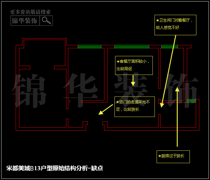 宋都美域B13户型原始结构分析-缺点↓