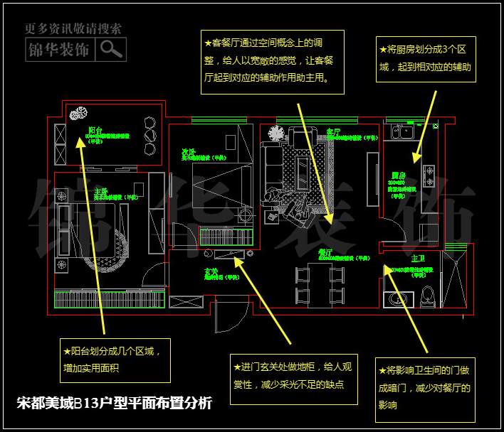 宋都美域B13户型平面布置分析↓